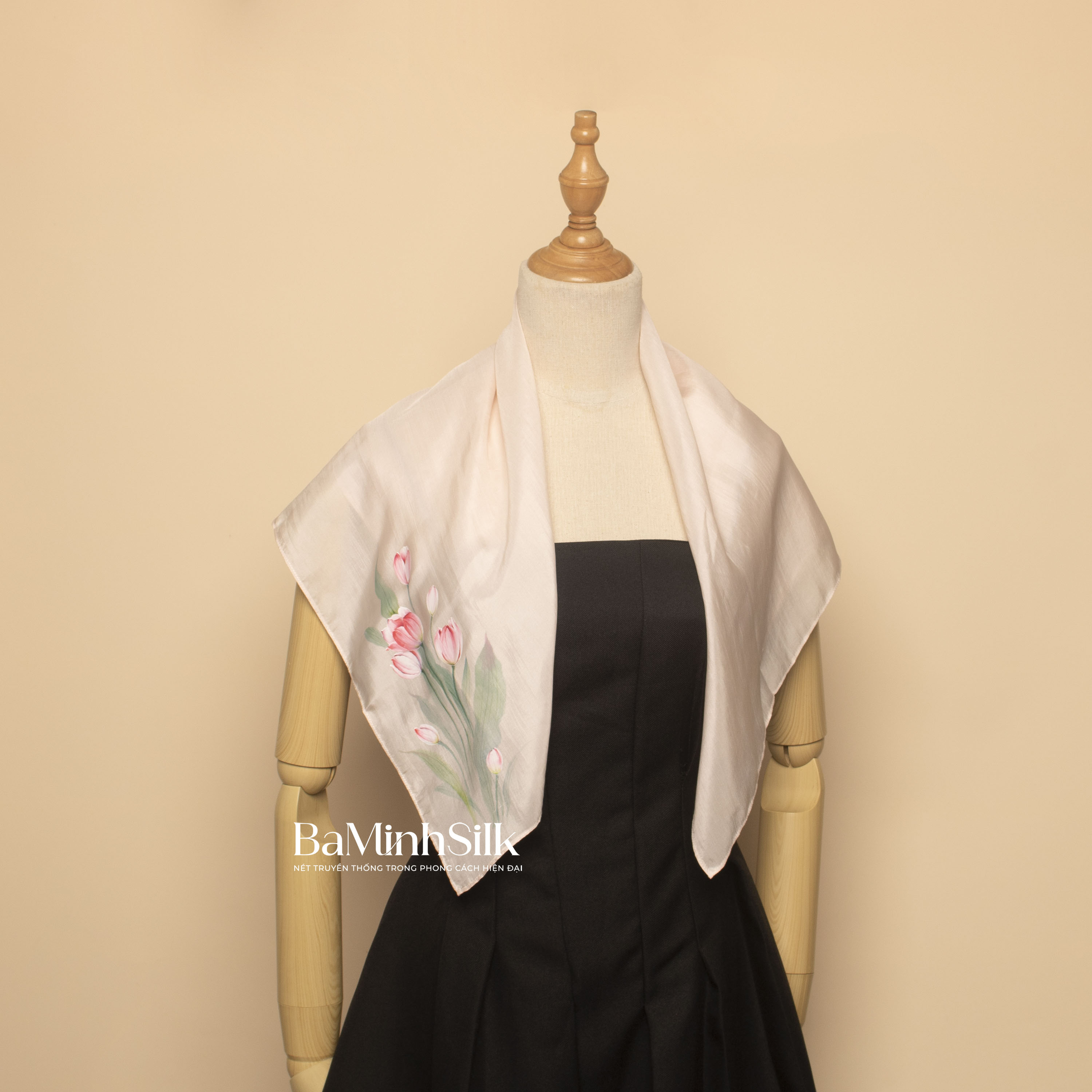 Khăn lụa vuông hoa tulip vẽ tay cao cấp – Món quà tinh tế, hiện đại từ lụa tơ tằm Việt Nam!