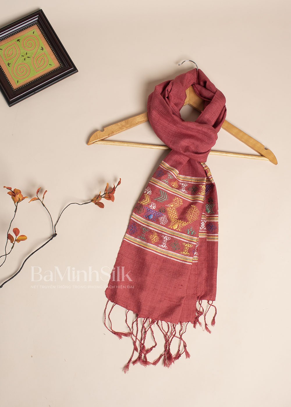 - Chất liệu: 100% sợi tơ tằm tự nhiên, được kéo và xe sợi bởi đồng bào Thái Nghệ An