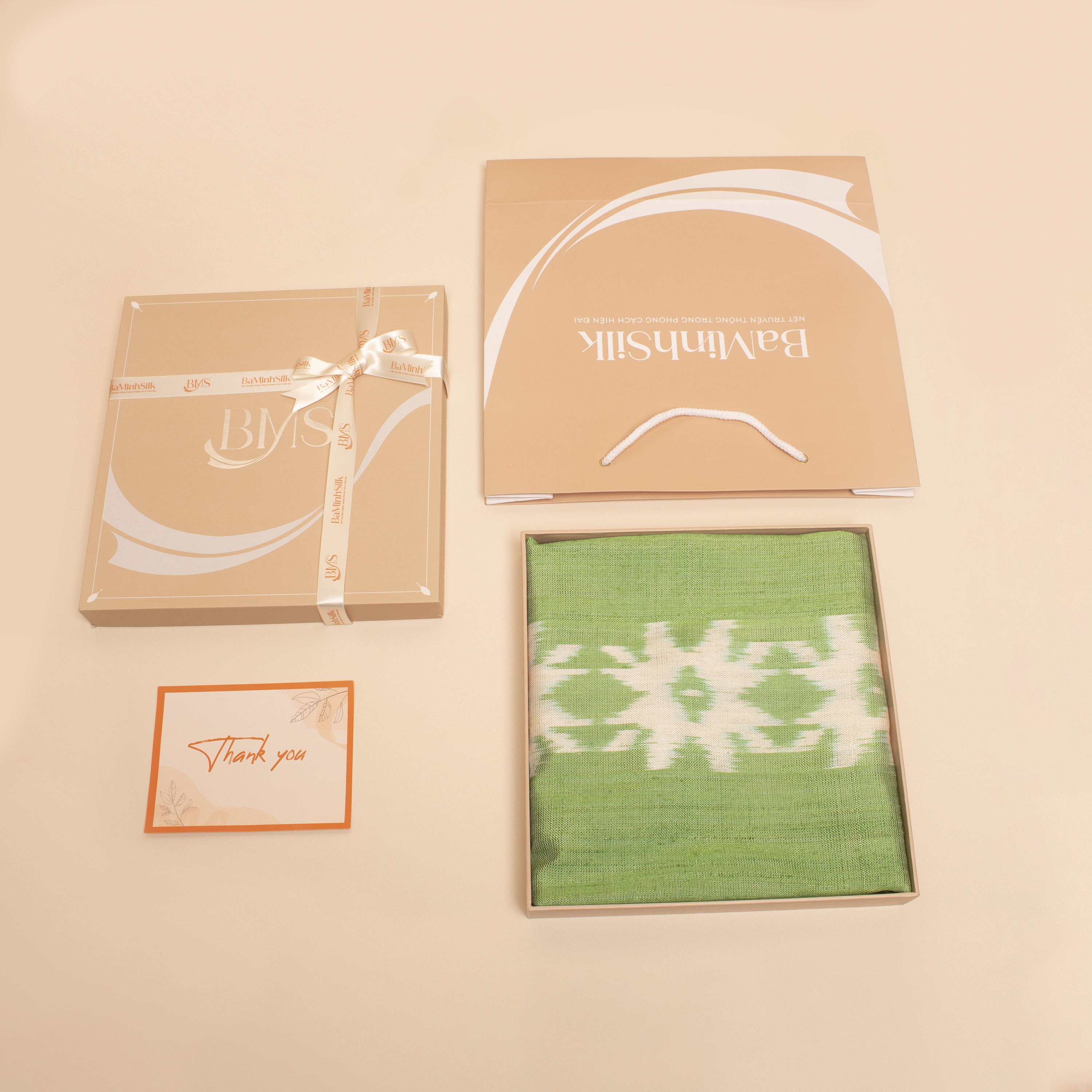 - Chất liệu: 100% sợi tơ tằm tự nhiên, được kéo và xe sợi bởi đồng bào Thái Nghệ An.