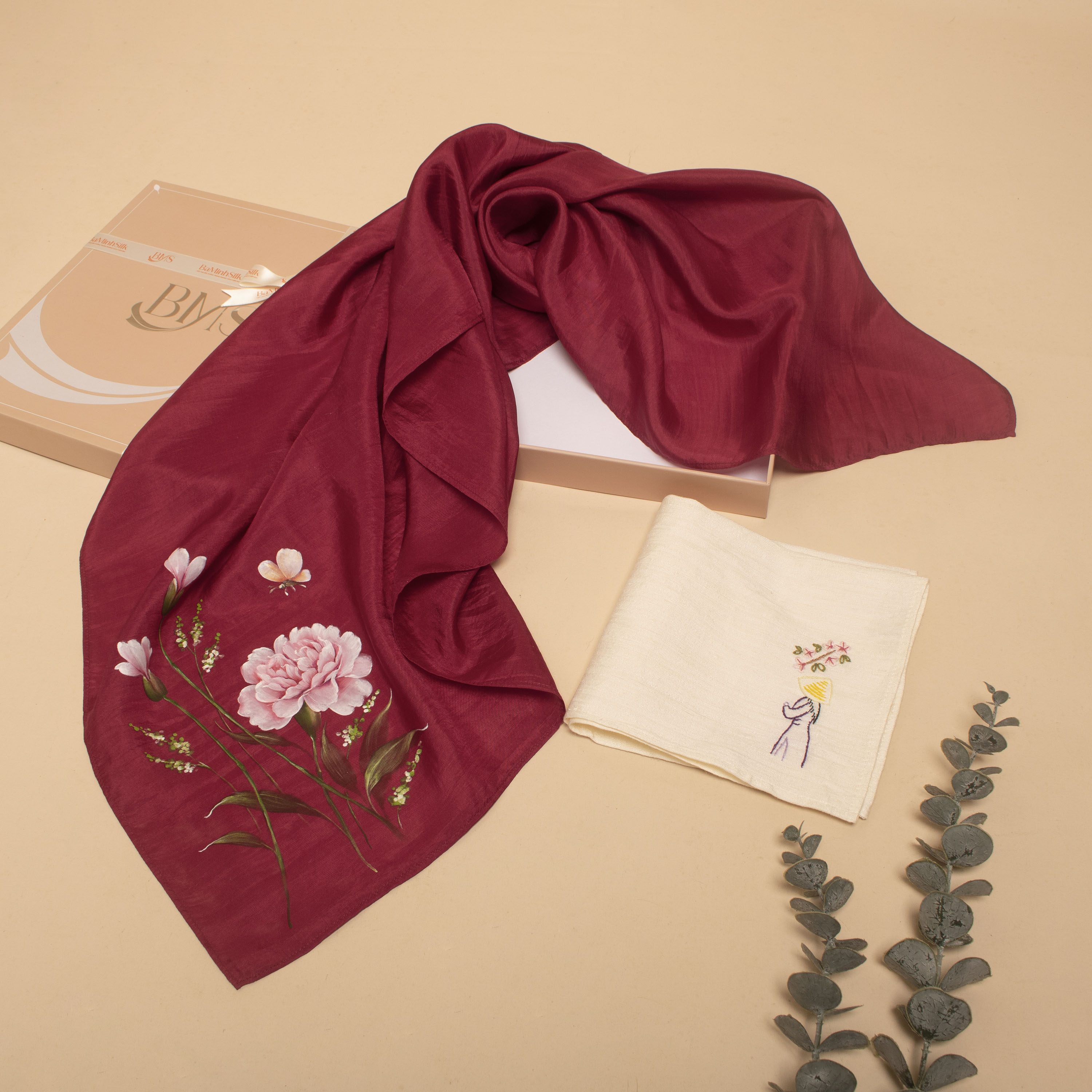 - 01 khăn tay tơ tằm thêu lá bồ đề ghi size 30x30cm