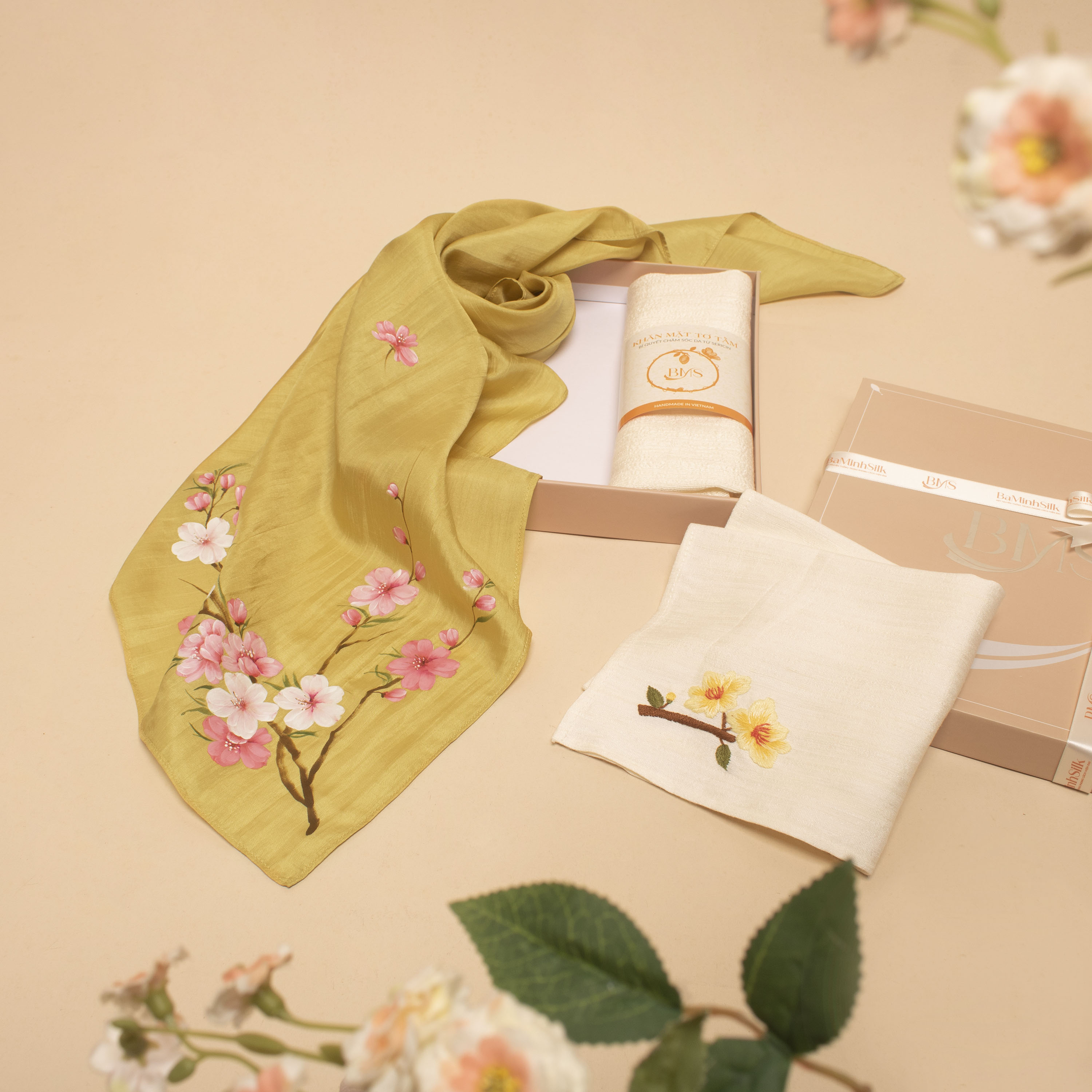 Bạn có thể xem thêm khăn choàng lụa tơ tằm tại đây. Xem các set quà mới nhất tại fanpage: Lụa Tơ Tằm Bá Minh.